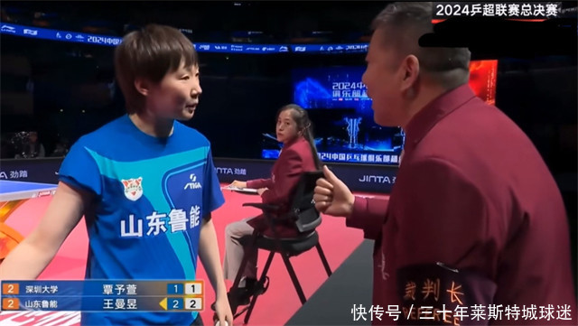 而在女团决赛中,遭受的争议时刻彰着许多。尤其是在决胜盘,王曼昱vs覃予萱,在第四局遭受一次争议判罚后,深圳大学队以及孙颖莎球迷怒不成遏,吵着条款裁判取消王曼昱得分,王曼昱致使和孙颖莎齐争论了起来,现场乱成一锅粥,比赛中断了快要10分钟,王曼昱那时也受到影响丢了一局,直到决胜局才再行收复浮浅水平拿下比赛!