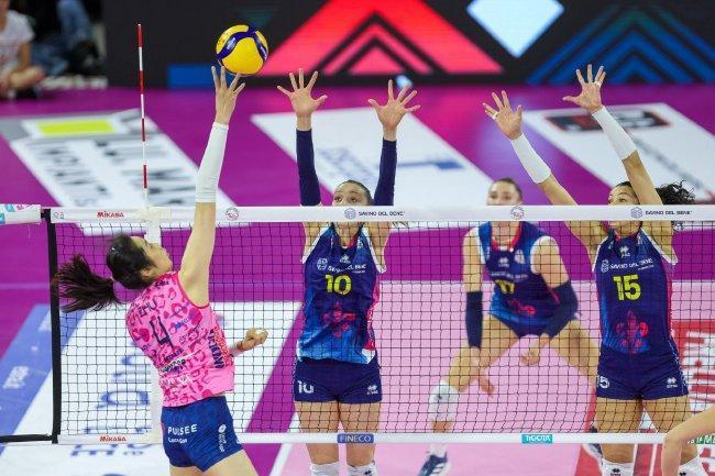 客战强敌斯坎迪奇,科内利亚诺女排强阵首发,派出主攻加比(巴西)、朱婷(中国),副攻都里切拉、法尔,策应哈克(瑞典),二传沃沃什(波兰)和目田东谈主德吉纳罗。斯坎迪奇先发亮相的是主攻赫博茨(比利时)、明加尔迪,副攻L·恩瓦卡洛、卡罗尔(巴西),策应安特罗波娃,二传奥格涅诺维奇(塞尔维亚)和目田东谈主卡斯蒂略(多米尼加)。
